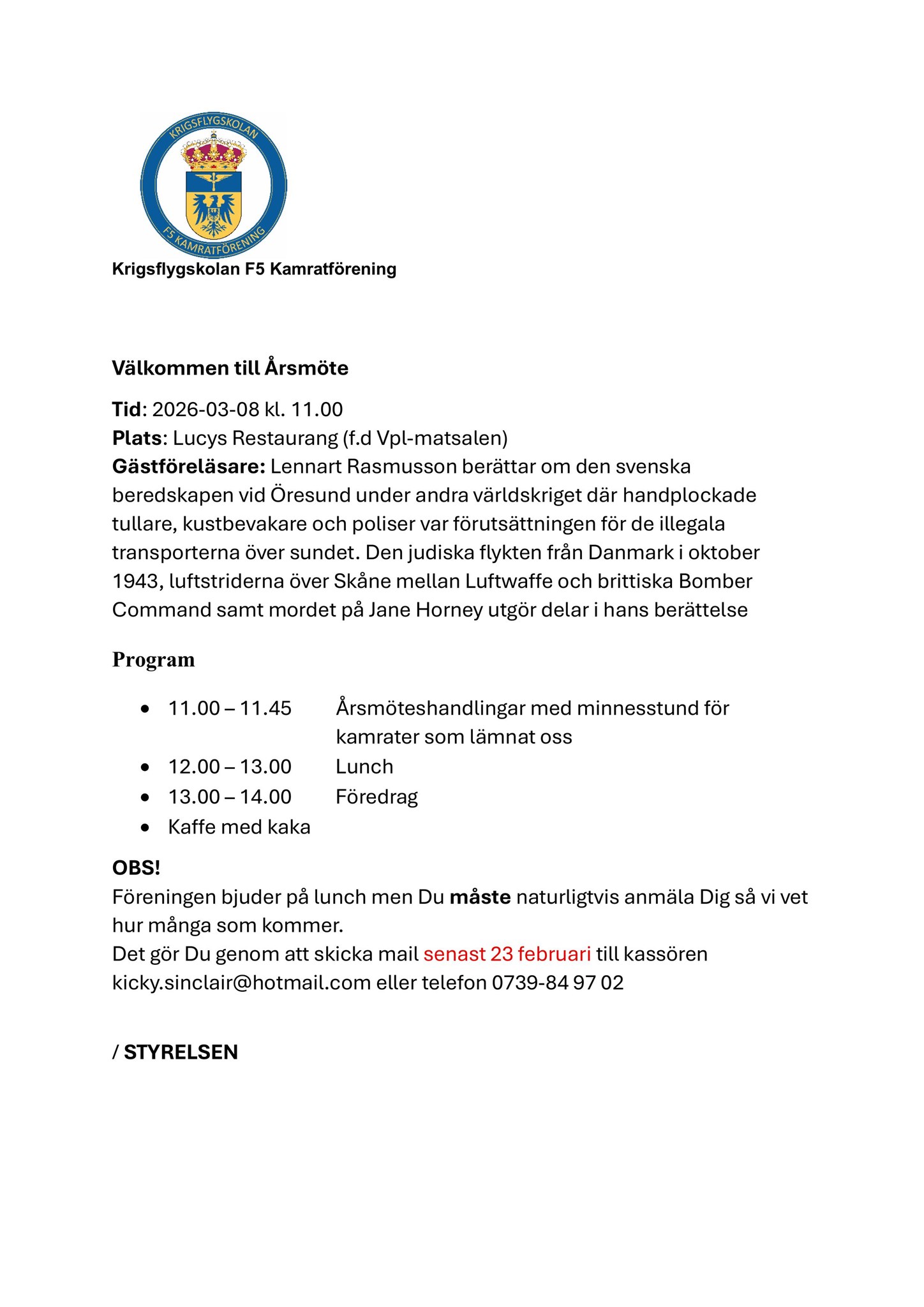 Snart dags för årsmöte, den 8 Mars kl11:00.